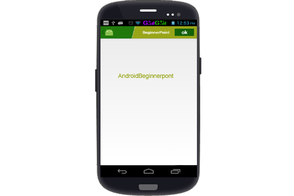 package com.example.sarvesh.testproject; import android.app.ActionBar; import android.app.Activity; import android.support.v7.app.AppCompatActivity; import android.os.Bundle; import android.view.Gravity; import android.view.View; import android.widget.TextView; public class MainActivity extends Activity { @Override protected void onCreate(Bundle savedInstanceState) { super.onCreate(savedInstanceState); final ActionBar abar = getActionBar(); abar.setBackgroundDrawable(getResources().getDrawable(R.drawable.preview));//line under the action bar View viewActionBar = getLayoutInflater().inflate(R.layout.acttionbar_relative, null); ActionBar.LayoutParams params = new ActionBar.LayoutParams(//Center the textview in the ActionBar ! ActionBar.LayoutParams.WRAP_CONTENT, ActionBar.LayoutParams.MATCH_PARENT, Gravity.CENTER); TextView textviewTitle = (TextView) viewActionBar.findViewById(R.id.actionbar_textview); textviewTitle.setText("BeginnerPoint"); textviewTitle.setTextSize(14); abar.setCustomView(viewActionBar, params); abar.setDisplayShowCustomEnabled(true); abar.setDisplayShowTitleEnabled(false); abar.setDisplayHomeAsUpEnabled(true); abar.setHomeButtonEnabled(true); setContentView(R.layout.activity_main); } }...................................................................................................................................................................